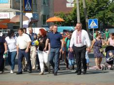 Потім під супровід оркестрів стартувала святкова хода представників влади та ділових кіл Чернігова та області до Центрального Парку культури і відпочинку.