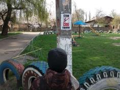 В радянському робітничому мікрорайоні Шерстянка в Чернігові креативно попереджають неохайних громадян вкрай низького культурного рівня про те, що не можна виконувати випускання сечі в районі дитячого майданчика.