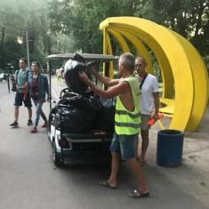 На території пляжу «Золотий берег» в Чернігові візок на електричній тязі, придбаний нібито щоб підвозити інвалідів, використовують для вивозу сміття.