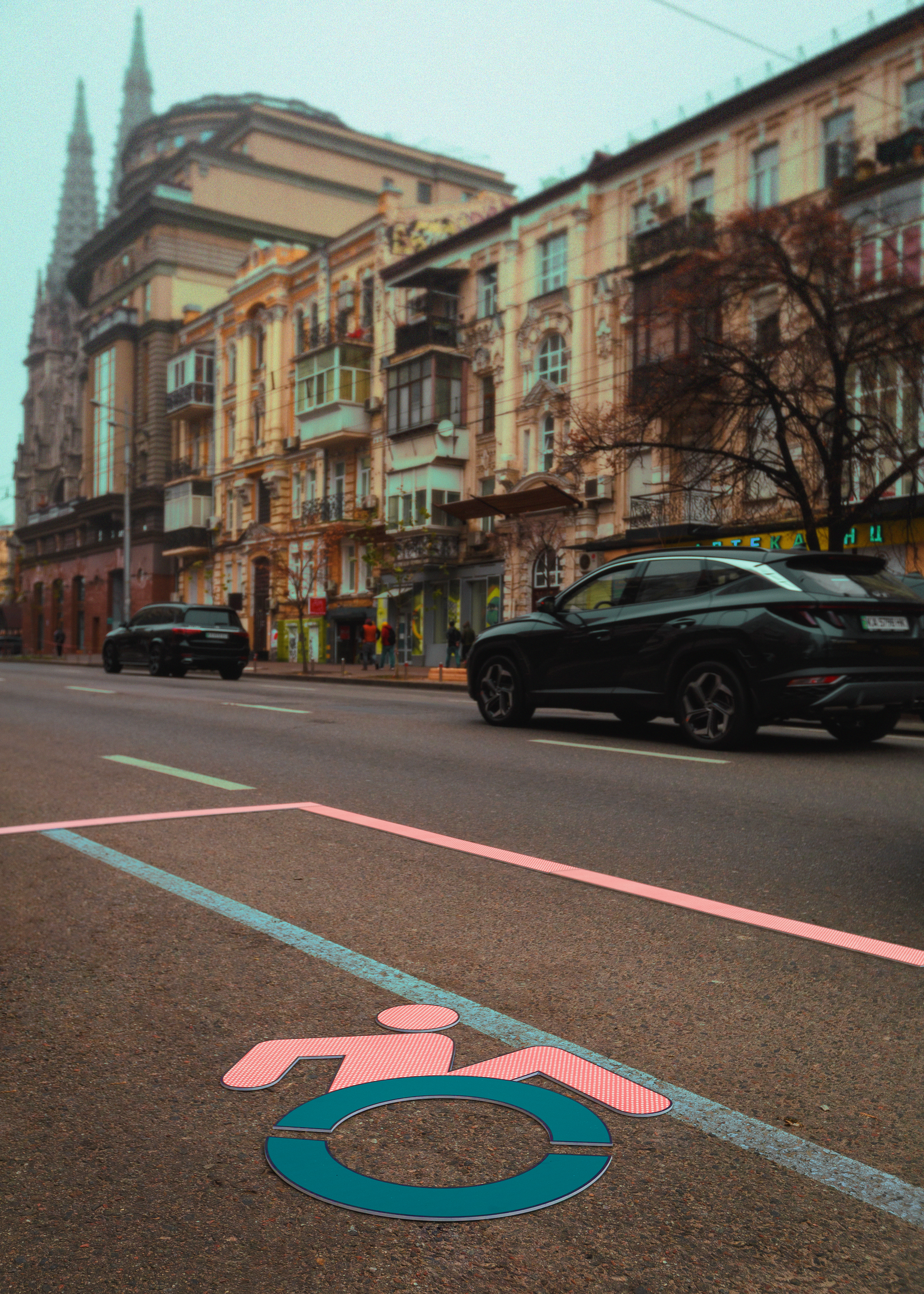 На п’яти локаціях Києва з’явились важливі для доступності міського простору об'єкти, яких не вистачає столиці: дерева, ліхтарі, тактильна плитка, доступні фонтани з питною водою та паркомісця для людей з інвалідністю. Команда доповнила «ілюстрації» поясненням щодо їх функції та продемонструвала, як відсутність безбар’єрної інфраструктури ускладнює пересування містом для людей з інвалідністю. Фото проєкту можна завантажити за цим посиланням.