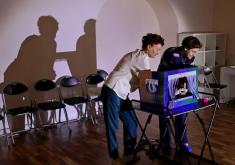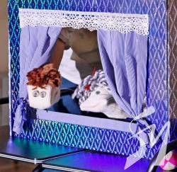 Цього разу зникло світло на маленькій ляльковій сцені з’явилося дві шкарпетки. Тіні на стіні створювали атмосферу таємничості. А шкарпетки розмовляли між собою. Говорили про буденне шкарпеткове життя. Як робили собі зачіски.