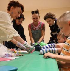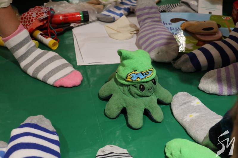 За годину встигли змайструвати різних казкових героїв зі шкарпеток для лялькової сцени. І вони уже здійснили перший вихід на публіку.