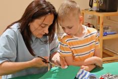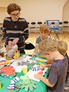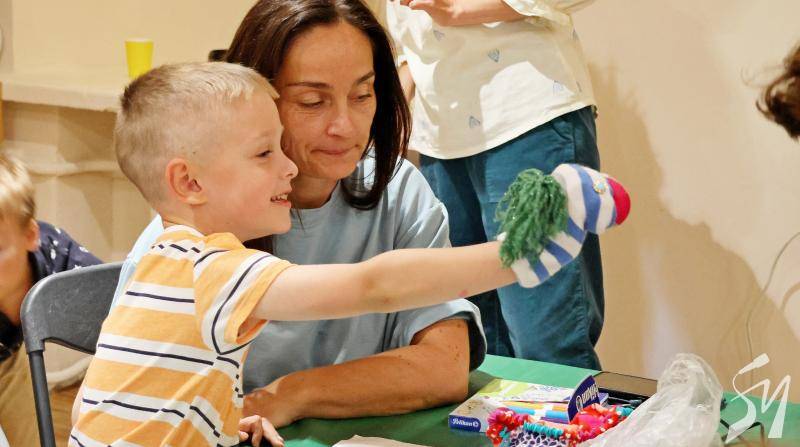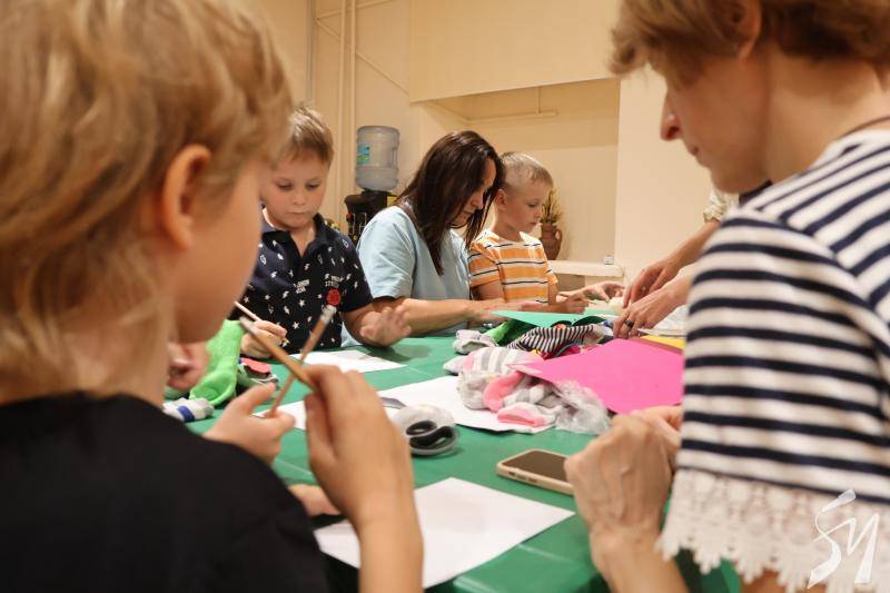 … Авторки Майстерень Олена Росстальна (Olena Rosstalna та Катерина Янчук допомагають дітям і їх батькам закінчити створювати шкарпеткових героїв.