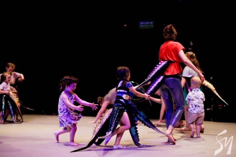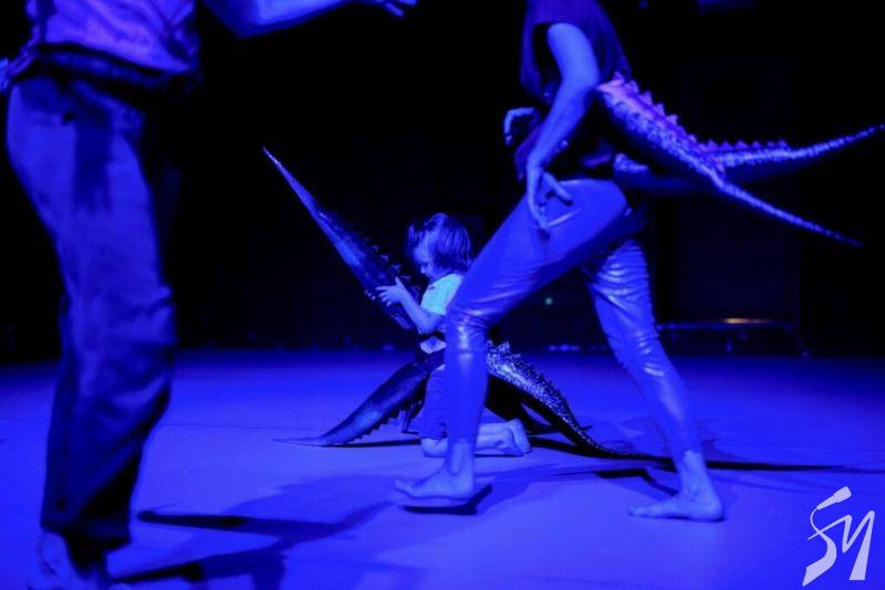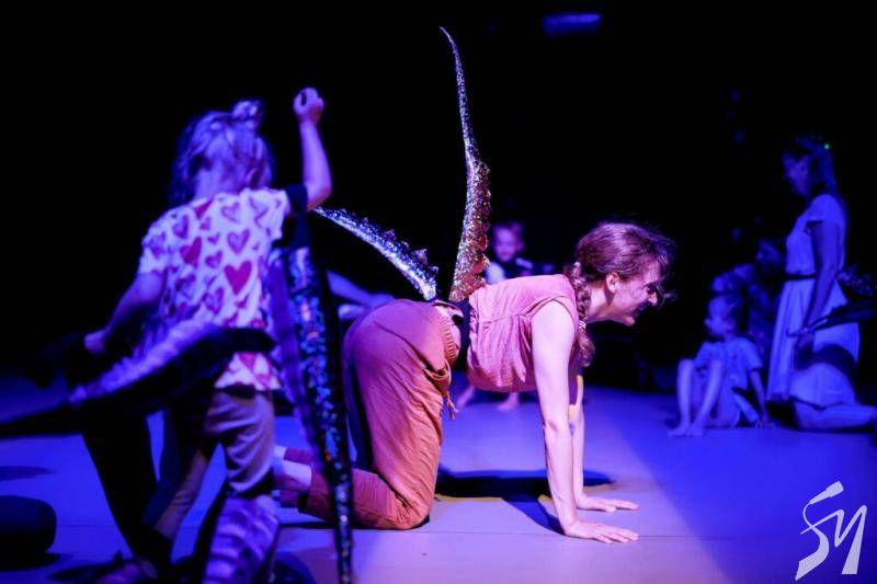 Таємниче дійство. Маленькі глядачі знову сиділи по боках великого килима на м’яких матах. Тьмяне світло спочатку. Промінь прожектора. Здавалося ми перемістилися у часі на мільйони років у минуле, аби побачити, як зароджувалося життя на планеті Земля. Якісь істоти з хвостами виходили з моря на берег. Починалося зовсім інше життя.