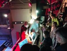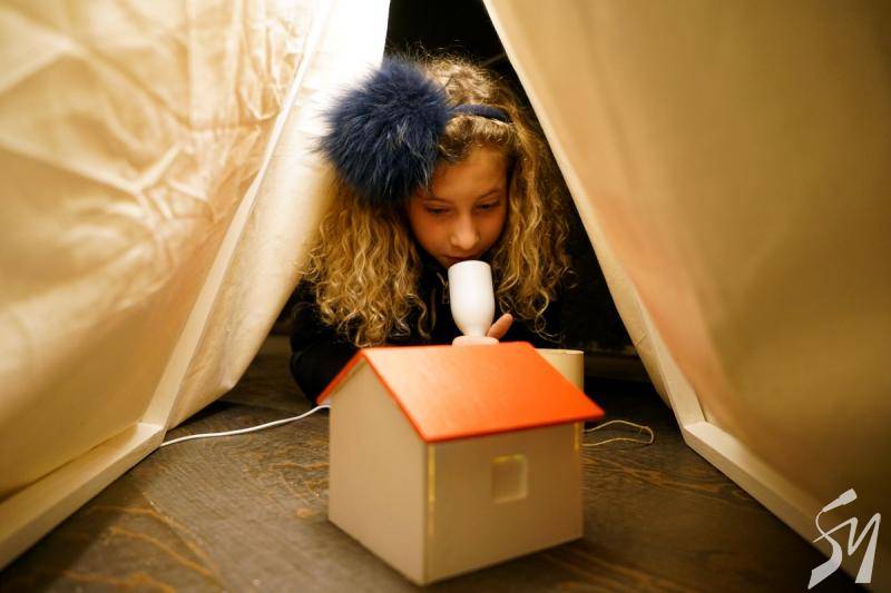 Саме в цьому театрі дітям і їх батькам розповіли, як народжуються театральні вистави. Юним вручили іграшкову сцену, і вони розповідали з неї про те, де вони перебувають в театрі. Школярі відвідали цех реквізиту і костюмів. Побували на балконі, з якого освітлюють сцену і де працює звукорежисер. Спустилися в гримерну, де наносили грим на малюнки персонажів. І врешті-решт вийшли на сцену, де розповіли про побачене і погралися.