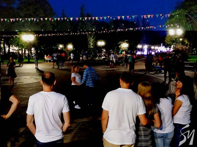 Центральна алея від площі до Катеринки у броунівському русі. Починається з латинських ритмів біля сцени. Продовжується фонтанним хітами.