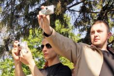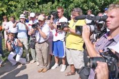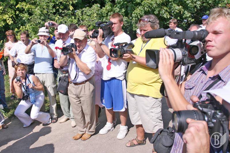 Чернігівських журналістів намагався помістити в кадр Віктор Кошмал. Втім, сам він туди теж встиг потрапити.