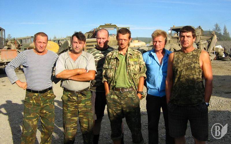 Домовились наступного разу зустрітися вже у Чернігові. На прощання сфотографувався разом з чернігівською бригадою. Світлина вийшла чудова: шестеро міцних суворих чоловіків на фоні потужної шляхобудівної техніки і якутських сопок...