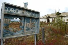 Враження від прогулянки по Озьорному було таке, начебто селище обстрілювали з артилерії. Жодного вцілілого будинку, все розбите і розкидане: великі іржаві бочки, бита цегла і погнутий метал, шматки шиферу і обгорілі дерев’яні стовпи, з яких у безсилій немічі звисали темні дроти. А в центрі колишнього селища біля адміністративного будинку й досі стояв колись пофарбований у блакитний колір газетний стенд з великою дірою посередині.