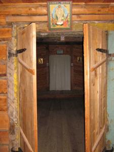 Дойдя до церкви в мокрой по колени траве, я зашел вовнутрь. Достаточно скромная обстановка, небольшой иконостас, несколько икон на стенах, царские ворота завешены белой простыней. Свечи, спички, несколько ламинированых образков. Тишина и покой.