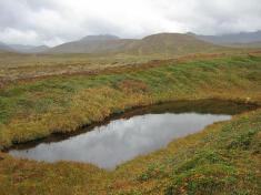 В Половинной долине немало маленьких озерец, а то и просто луж с прозрачной водой и песчаным дном. Они наполняются водой из-под земли, о чем свидетельствовали воронки и отверстия в песке на дне этих водоемов. На привалах лакомился черникой, брусникой, шикшей. Взошел на водораздельный перевал, отсюда Берингового моря уже не было видно.