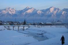 На следующий день въехали в Бурятию. Вблизи Улан-Удэ глазам открылись замечательные зимние пейзажи: широкая река Селенга, вычурные скалы, дорожный „серпантин”. Обедали в придорожном кафе, где подавали национальный бурятский суп с бараниной. Когда в мою тарелку положили три больших куска мяса, я сразу вспомнил Монголию с ее кухней.