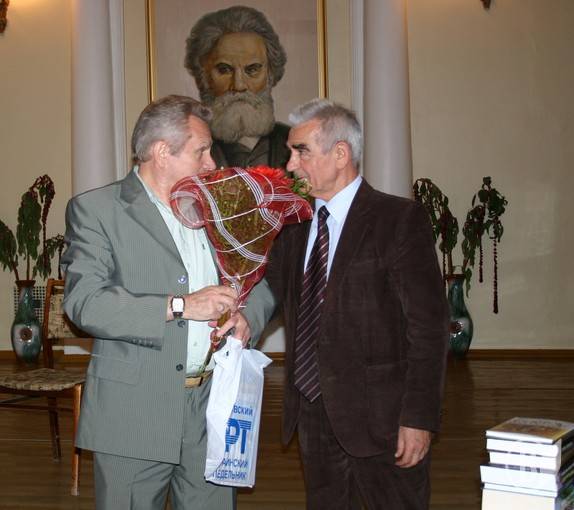 Співробітник бібліотеки Вікторія Солонікова познайомила з книжковою виставкою «Життя прекрасна таємниця» (А.Казка). До 120-річчя від дня народження А.В.Казки, уродженця Седнева». Письменник із подивом дізнався, що в Чернігівській державній обласній універсальній науковій бібліотеці ім. В.Г.Короленка є фото А. Казки з Василем Мисиком за 1927 рік, про яке він не знав.