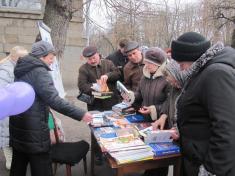 Саме ж свято почалось ще біля будинку – привітні бібліотекарі з повітряними кульками та кольоровими шарфами запрошували перехожих відвідати бібліотеку, а також вибрати собі книгу або журнал в подарунок.