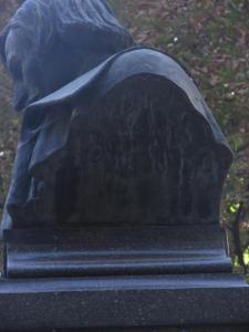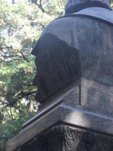 Для выполнения работ заказали наилучшего тогдашнего скульптора – всемирноизвестного Пармена Забилу, который родом из Монастырища Ичнянского района. Он взялся за дело рьяно и вероятно лучше всех воспроизвел черты лица Гоголя. Как не забыл и о себе, спрятав на складке одежды Николая Васильевича и свой профиль. Под правильным углом можно хорошо разглядеть черты лица легендарного скульптора. Увидеть его можно ниже на фото.