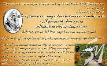 19-20 вересня в Чернігівському літературно-меморіальному музеї-заповіднику Михайла Коцюбинського відбудеться Всеукраїнська науково-практична конференція «Художній світ прози Михайла Коцюбинського». Вона присвячена 155-річчю від дня народження письменника.