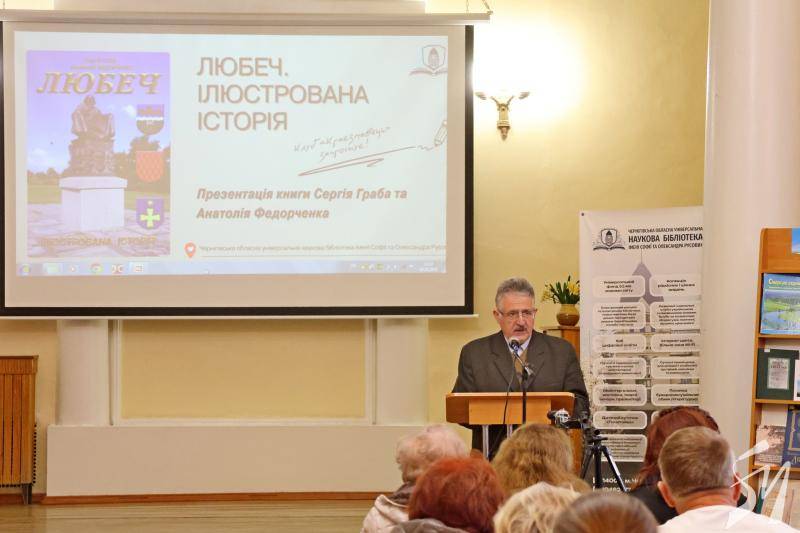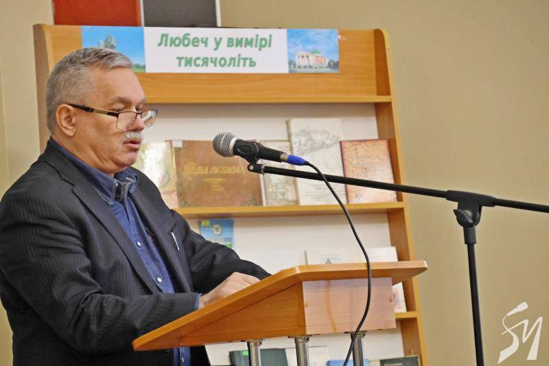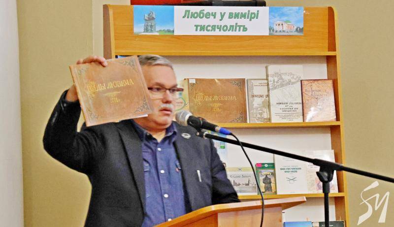 Саме Сергій Граб і представляв видання. Розповів, як довго тривала робота над альбомом. Адже необхідно було реставрувати старі зображення Любеча та перевести у цифровий формат високої якості.