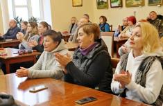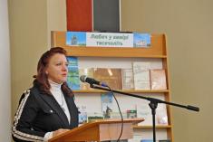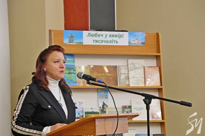 У залі демонструвалася книжково-ілюстративна виставка "Любеч у вимірі тисячоліть", яку прокоментувала модератор заходу – завідувачка відділу краєзнавства бібліотеки Ірина Каганова.