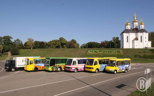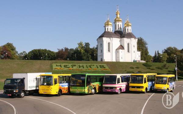 Автобусы с цветочными названиями и первый грузовик завода были выставлены на Красной площади Чернигова и на въезде в город.
