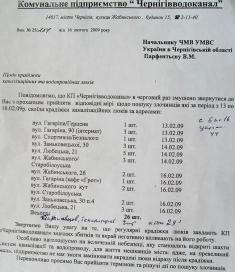 Сегодня город в опасности и мы несем большие потери. «Черниговводоканал» понес дополнительные потери в сумме 16000 гривен из-за того, что легковой автомобиль попал в открытую шахту. Заплатили издержки.