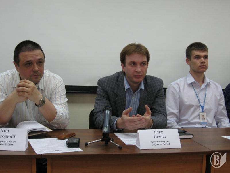 Єгор: - Головний акцент ми робимо на щоденні практичні завдання! Одне з них, приміром, було таким: група студентів упродовж дня легальними способами мала примножити 200 грн. Нашим студентам вдалося заробити 1400 грн., тобто вони примножили свій капітал у сім разів! І після цього ми почули: «Тепер ми не віримо, що в нашому місті можна бути бідними». Дехто з них випікав і продавав печиво, хтось малював та продавав картини.
