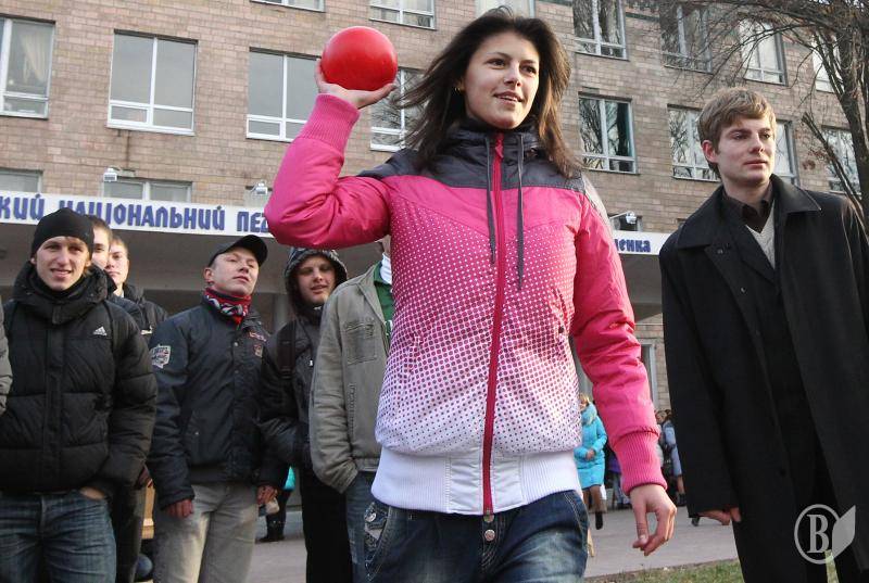 А коли вже носики у дівчат посиніли – запросили на танці прямісінько перед центральним входом. Стугоніла земля, зігріваючись раділа юрба студентів.