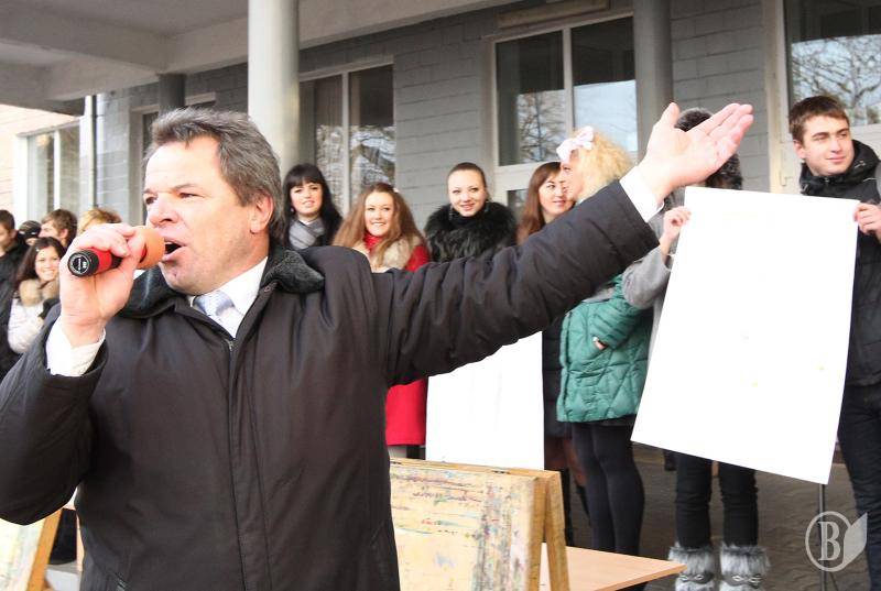 З приводу 40-річчя свого "хрещення у студенти" ректор провів фотосесію для всіх бажаючих, особливо для дівчаток...