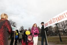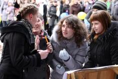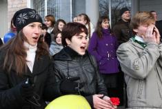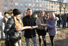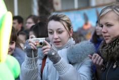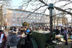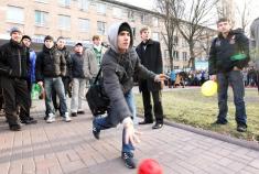 Гриміла музика. Перехожі зупинялись та все запитували – яке це свято у студентів. З самого ранку погода була сира і прохолодна. Але ведучі не барились. Запрошували студентів намалювати дружні шаржі викладачам у відповідь, пограти з кеглями, написати епіграму.