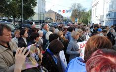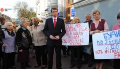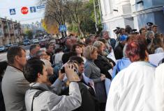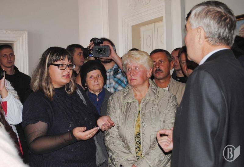Ще до початку біля входу зібралися жителі гуртожитків міста, що борються за право приватизувати житло.