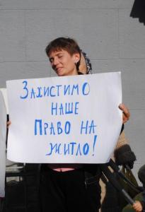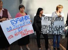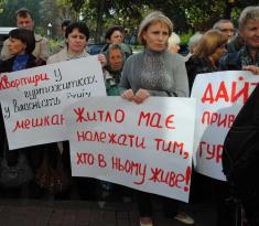 Серед мітингуючих і жителі будинку по вулиці Полуботка, 120. Другий під’їзд якого, за словами жителів, незаконно зробили гуртожитком. Вони не можуть приватизувати свої квартири, що отримали наприкінці 80-х років.