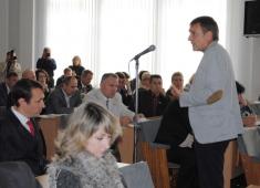 Така ж перепалка панувала і в сесійній залі. Депутат Верховної Ради Валерій Дубіль просив мера проголосувати за присутність людей в залі. Але опонував йому інший нардеп Сергій Андрос. Вони, як особи недоторкані, з’ясували позиції і сесія перейшла у звичайне русло.