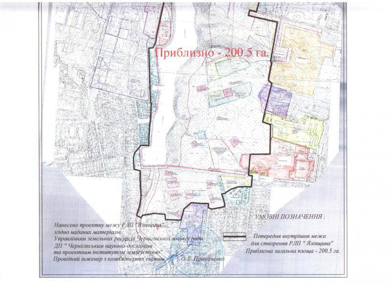 «Ця карта напрацьована робочою групою при земельної комісії Чернігівської облради і є офіційним документом, який передано 09.04.2013г. до міськвиконкому для подальшої роботи зі створення РЛП (див. сайт облради).