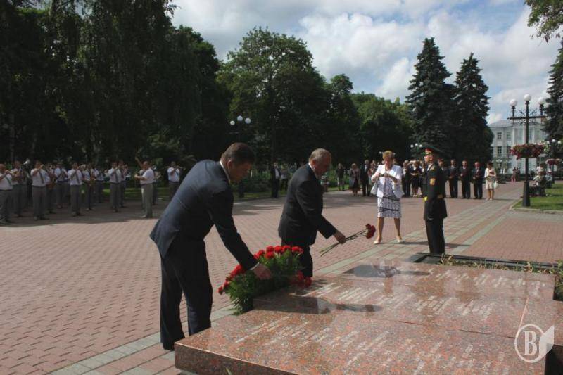 Члени гомельської делегації разом з чернігівськими колегами поклали квіти до братської могили загиблих воїнів у сквері ім. М. Попудренка та до пам'ятника Т.Г. Шевченку.