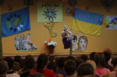 Біля воріт гостей привітно зустріли чернігівські дітлахи. Вони підготували дуже цікаву святкову програму, після якої відбулось перше заняття у відремонтованому басейні на території санаторію для однієї з груп дитячого закладу.