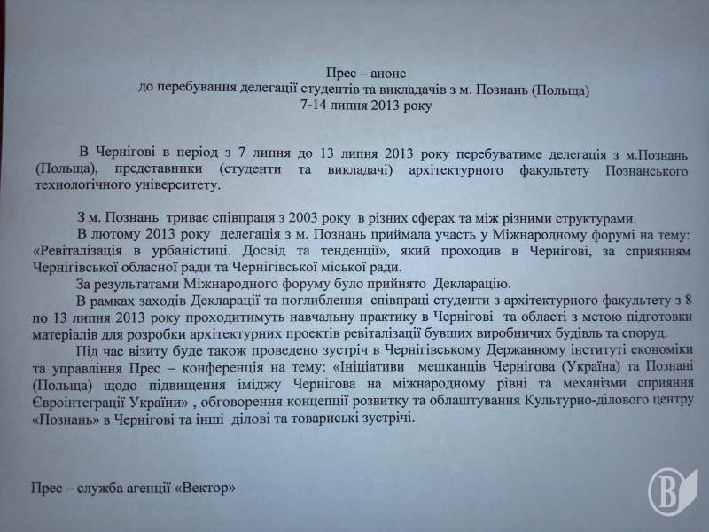А редактор газети «Світ-інфо» Петро Антоненко запропонував організувати прес-тур до Познані для чернігівських журналістів.