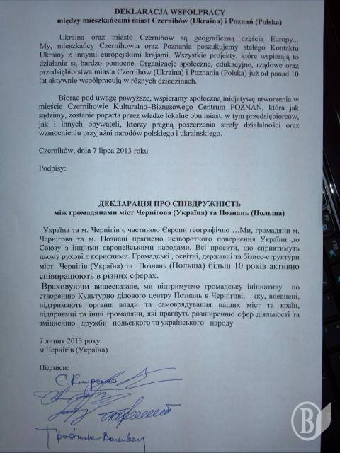 Громадяни Чернігова і Познані підписали Декларацію про співдружність. Долучайтеся! (відео, фото)