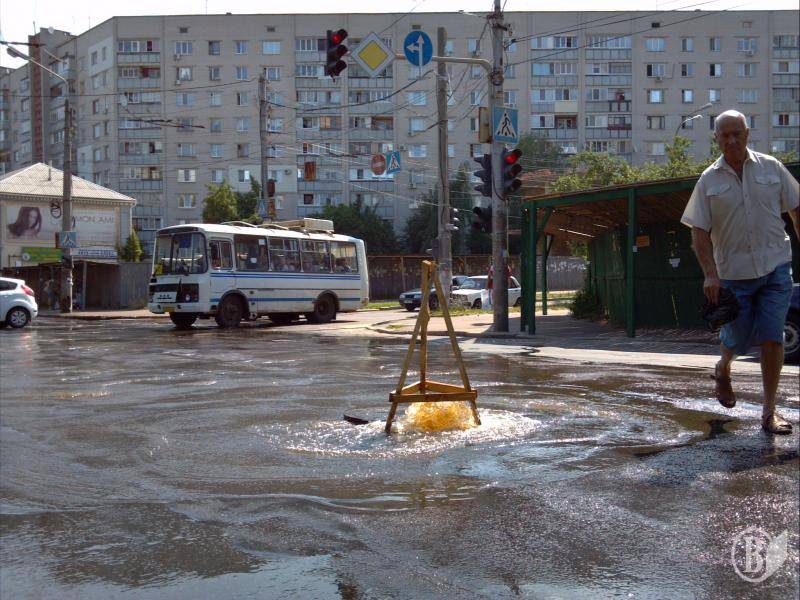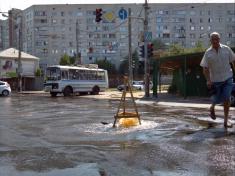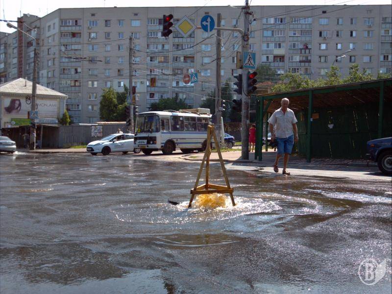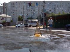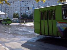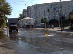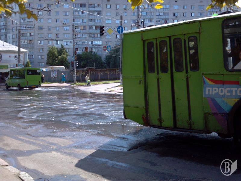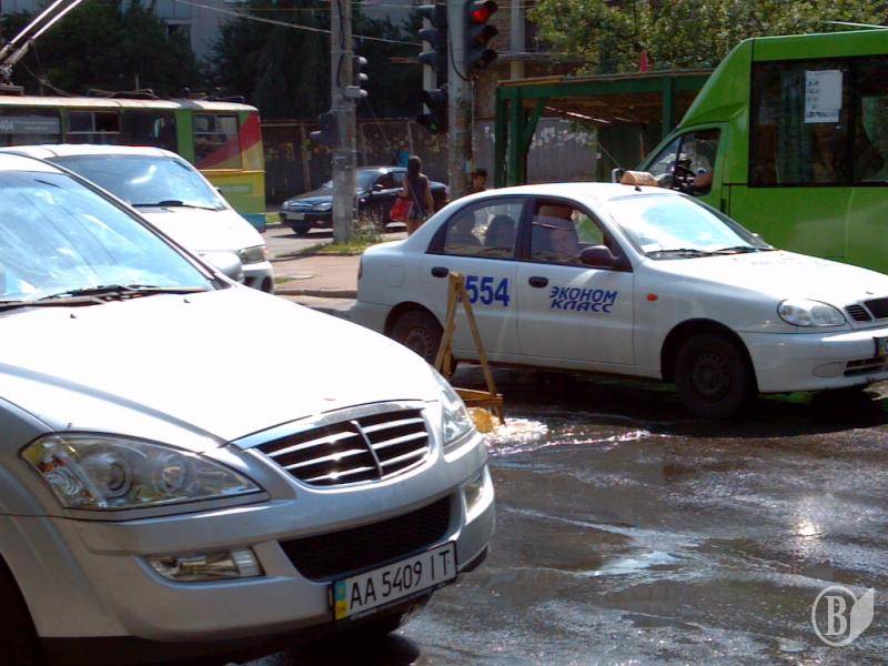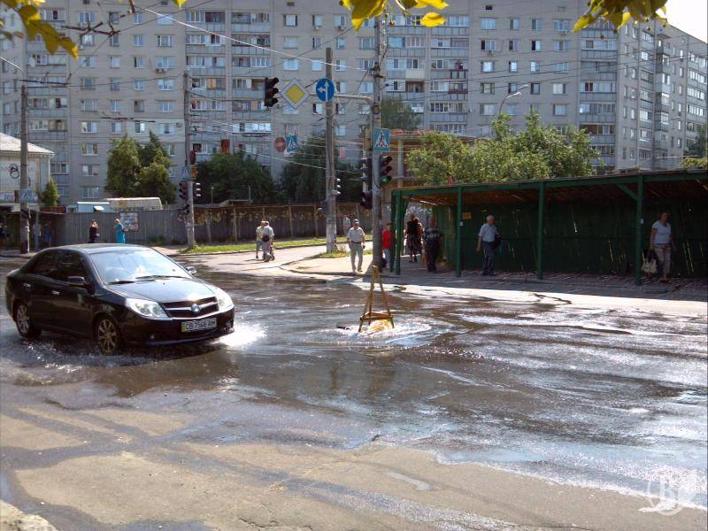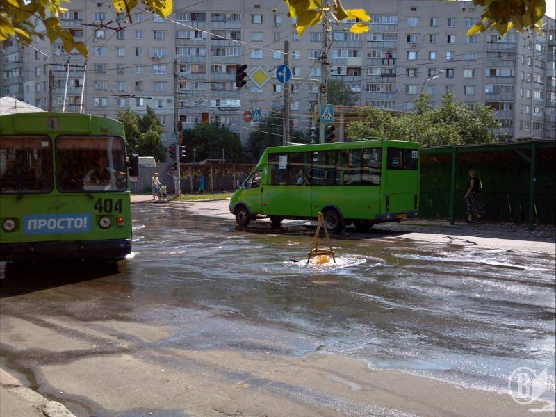 Аварійних машин водоканалу на час зйомки не видно. А транспорт, як діти миється у безкоштовній воді.