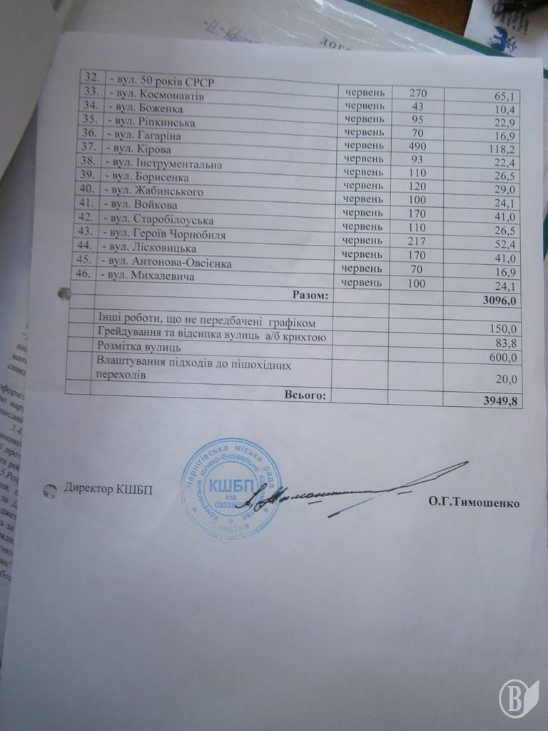 Комунальне шляхобудівне підприємство (КШБП) в цьому році має відремонтувати дороги на 3096 тис. грн. по 46 чернігівських вулицях, загальною площею 12832 кв. м.