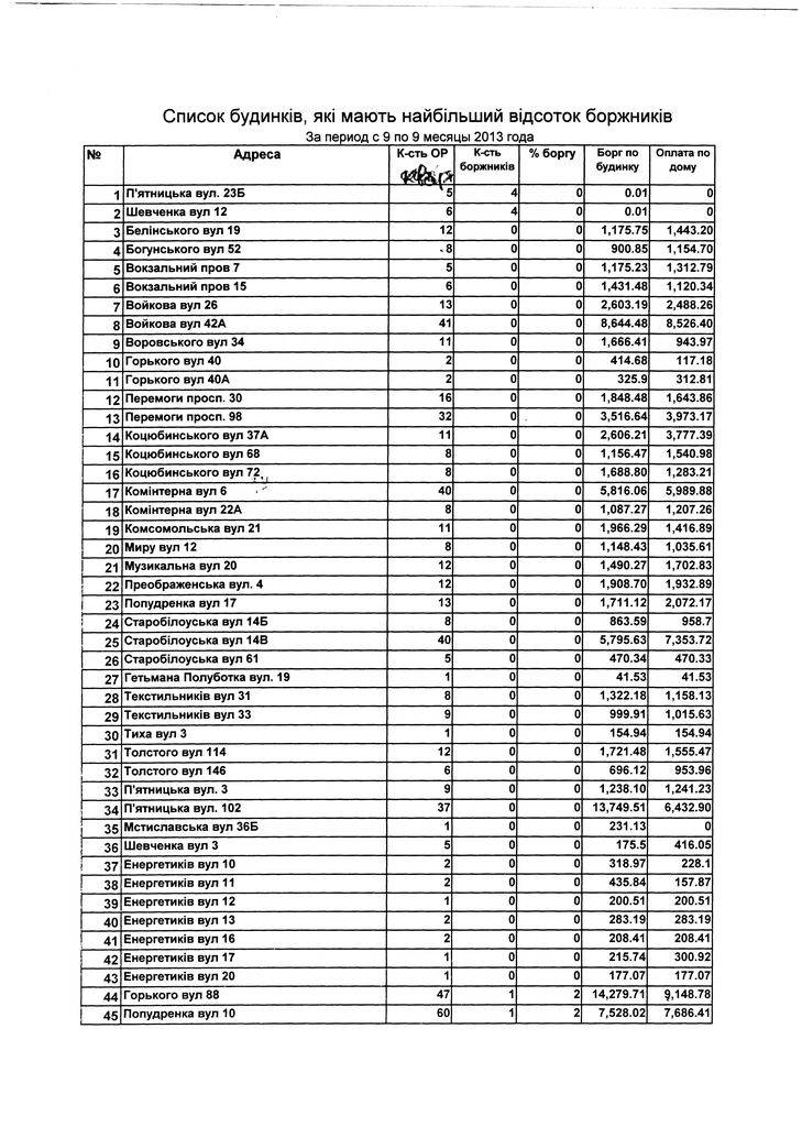 Список домов, которые имеют наибольший процент должников