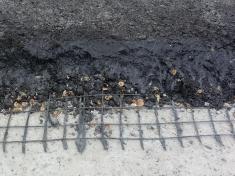 2. Поверх цього піску по всій ширині вкладається геотекстильний матеріал, який має термообробку, щоб запобігти перемішуванню щебню з піском, підвищити пружність, запобігти утворенню колійності в нижньому шарі основи та потраплянню води з нижнього шару піску наверх.