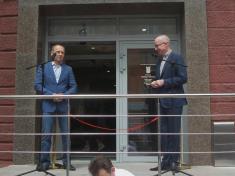 Як і годиться, разом урочисто перерізали символічну червону стрічку на вході.