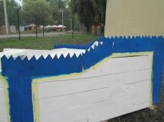 На дитячому майданчику, чи то пак газоні на міському пляжі «Золотий берег» в Чернігові встановлено імпровізований човен для дитячих забавок.