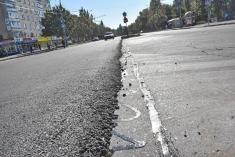 Відповідно до планів, до кінця цього року вирівнюючий шар асфальту буде на одній полосі руху по всій довжині цієї вулиці.