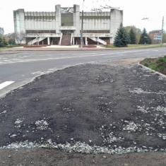 Тож віднині стиль радянської гігантоманії і чорнобильської пустки, притаманний нашому красивому «Палацу урочистих подій», доповнює і цей тротуар.