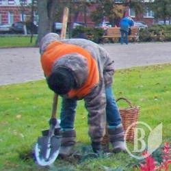 У сквері ім. Богдана Хмельницького в Чернігові, де довгий час тривала масштабна і часом скандальна реконструкція, комунальники сьогодні висаджують ялівець.