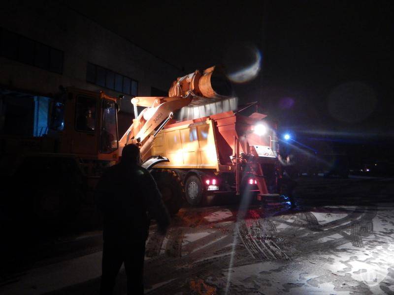Перша лінійка техніки комунального підприємства АТП-2528 вийшла о 21 годині в ніч з 27 на 28 листопада на посипання чернігівських доріг, по яких ходить пасажирський транспорт.