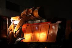 Куплений у цьому році навантажувач заповнював бункери нових 10-ти та 20-тонних МАЗів та стареньких відремонтованих ЗІЛів.