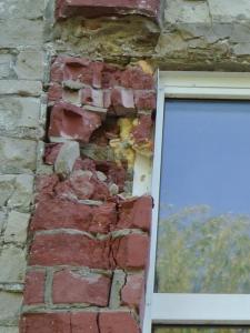 Який же то «жук» побив стіну? Так ретельно, що сама цегла розшаровується.