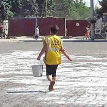 Жителів міста може здивувати факт, що центральна площа Чернігова побіліла. Це працівники КП АТП-2528 посипають клінкер сіллю, аби площа не позеленіла.