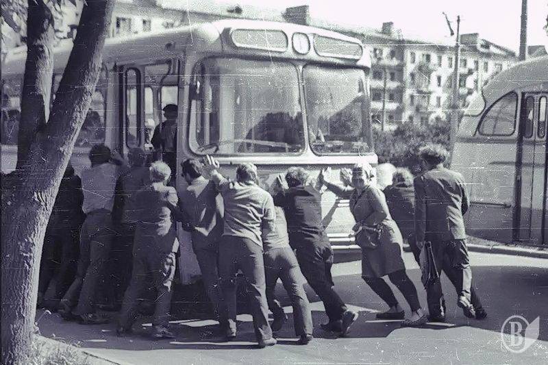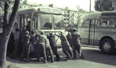 Це традиція іноді займатися неспотривною справою з тролейбусом – штовхати його гуртом.